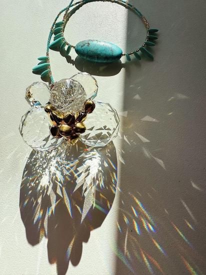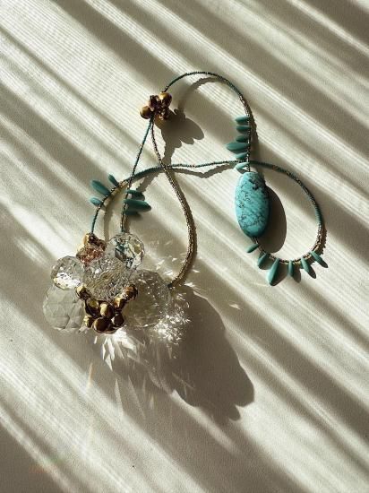 MATERAL: dagger beads、acrylic beads、Vintage Turquoise Composite、Czech glass beads、crystal cut glass suncatcher 30mm×2、20mm×2、15mm×3、