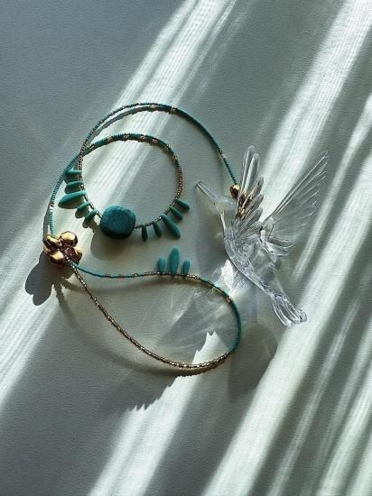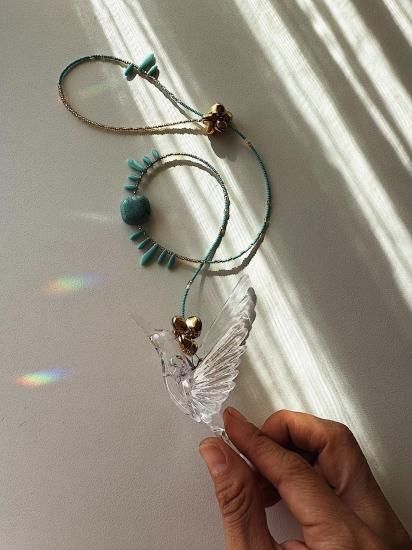 MATERAL: Dagger Beads、Acrylic beads、Vintage Turquoise Composite、Czech glass beads、Acrylic Birds、Iron Bell