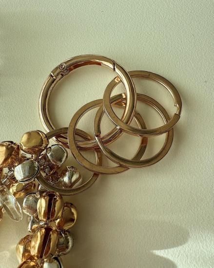 バッグのハンドルやスマホに付けれるように大きめのリングで。